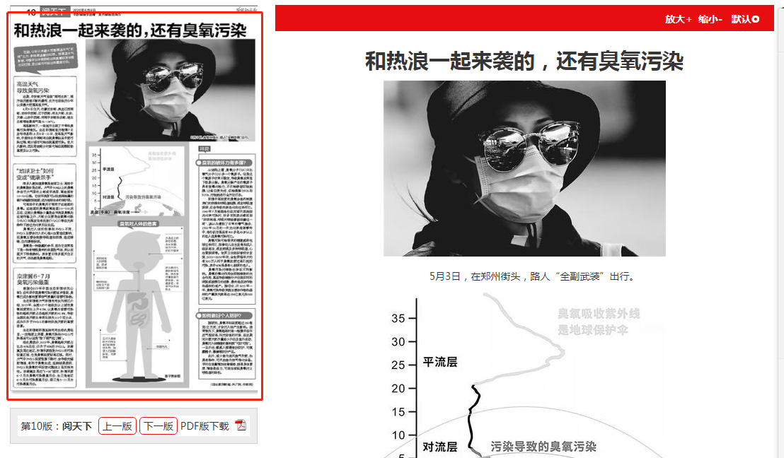 近期,今年以来最大范围高温天气“炙烤”北方,多地高温屡创纪录。受高温天气影响,中国华北中南部将出现臭氧轻至中度污染过程,部分城市可能出现重度污染。