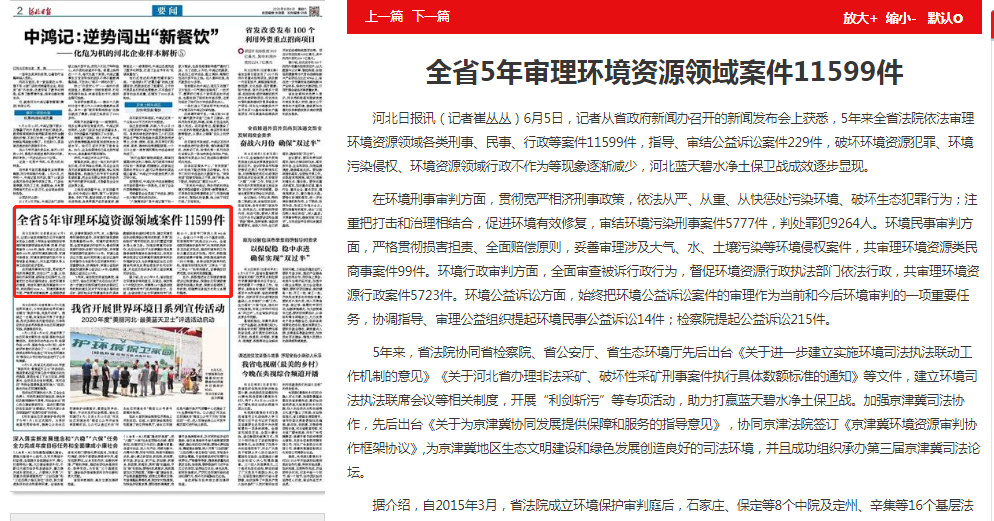 5年来,省法院协同省检察院、省公安厅、杏彩(中国)官方网站 先后出台《关于进一步建立实施环境司法执法联动工作机制的意见》《关于河北省办理非法采矿、破坏性采矿刑事案件执行具体数额标准的通知》等文件,建立环境司法执法联席会议等相关制度,开展“利剑斩污”等专项活动,助力打赢蓝天碧水净土保卫战。加强京津冀司法协作,先后出台《关于为京津冀协同发展提供保障和服务的指导意见》,协同京津法院签订《京津冀环境资源审判协作框架协议》,为京津冀地区生态文明建设和绿色发展创造良好的司法环境,并且成功组织承办第三届京津冀司法论坛。