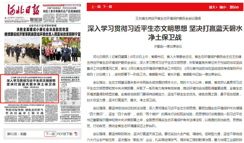会议强调,要坚持加强组织领导,严格考核问责。各级党委、政府要实行党政同责、一岗双责,切实履行生态环境保护主体责任。各职能部门要按照“管行业就要管生态”要求,守土有责、守土尽责,形成齐抓共管工作格局。省生态环境保护委员会及其办公室要充分发挥牵头抓总、统筹协调、督导检查作用,强化考核问责,层层传导压力,推动生态环境保护各项任务落到实处、取得实效,为建设经济强省、美丽河北提供有力支撑。