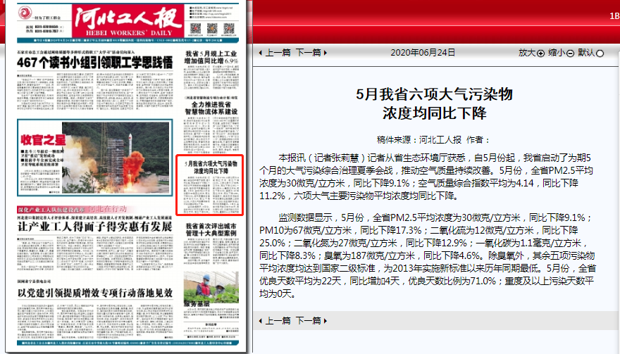 获悉,自5月份起,我省启动了为期5个月的大气污染综合治理夏季会战,推动空气质量持续改善。5月份,全省PM2.5平均浓度为30微克/立方米,同比下降9.1%;空气质量综合指数平均为4.14,同比下降11.2%,六项大气主要污染物平均浓度均同比下降。