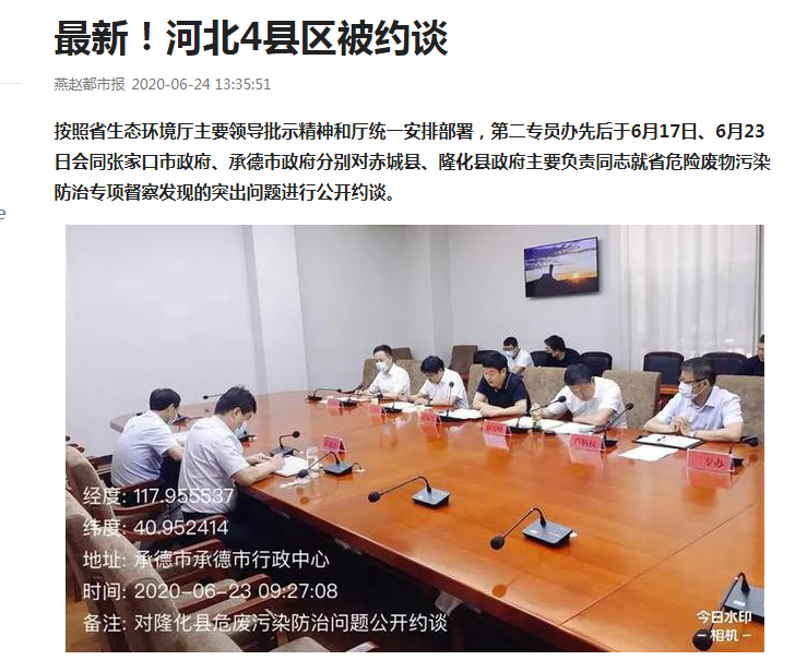 按照杏彩(中国)官方网站 主要领导批示精神和厅统一安排部署,第二专员办先后于6月17日、6月23日会同张家口市政府、承德市政府分别对赤城县、隆化县政府主要负责同志就省危险废物污染防治专项督察发现的突出问题进行公开约谈。