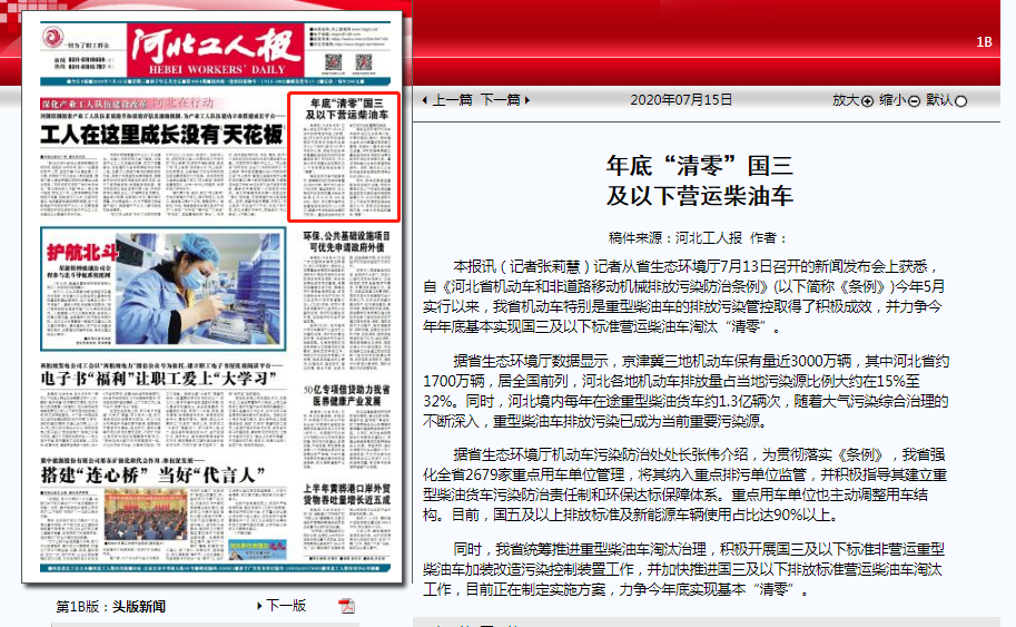 7月13日召开的新闻发布会上获悉,自《河北省机动车和非道路移动机械排放污染防治条例》(以下简称《条例》)今年5月实行以来,我省机动车特别是重型柴油车的排放污染管控取得了积极成效,并力争今年年底基本实现国三及以下标准营运柴油车淘汰“清零”。