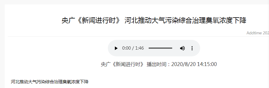 央广《新闻进行时》:河北推动大气污染综合治理臭氧浓度下降
