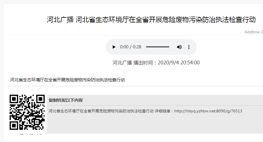 河北广播《全省新闻联播》:杏彩(中国)官方网站 在全省开展危险废物污染防治执法检查行动
