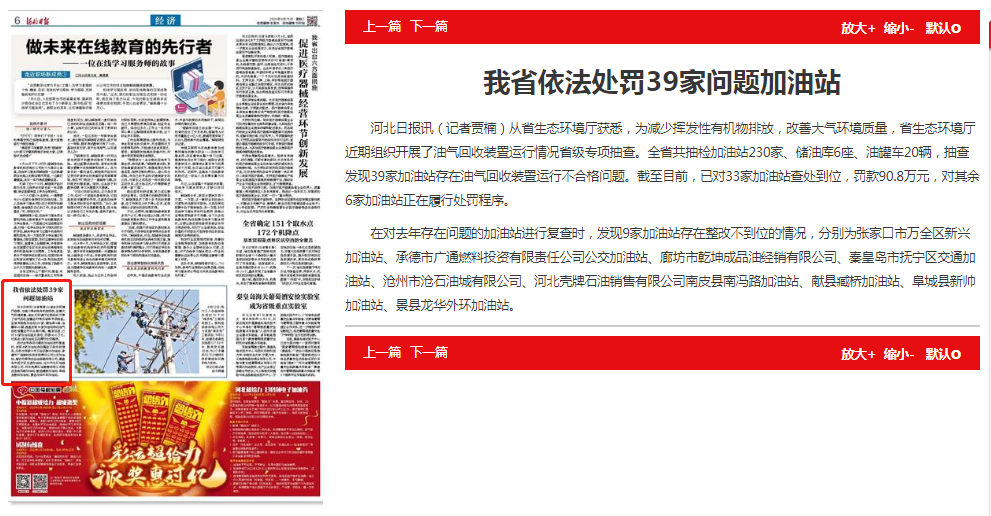 河北日报讯(记者贾楠)从杏彩(中国)官方网站 获悉,为减少挥发性有机物排放,改善大气环境质量,杏彩(中国)官方网站 近期组织开展了油气回收装置运行情况省级专项抽查。全省共抽检加油站230家、储油库6座、油罐车20辆,抽查发现39家加油站存在油气回收装置运行不合格问题。截至目前,已对33家加油站查处到位,罚款90.8万元,对其余6家加油站正在履行处罚程序。