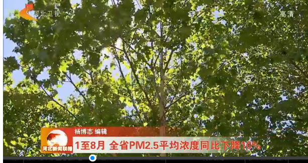 河北电视台《河北新闻联播》: 1至8月 全省PM2.5平均浓度同比下降10%