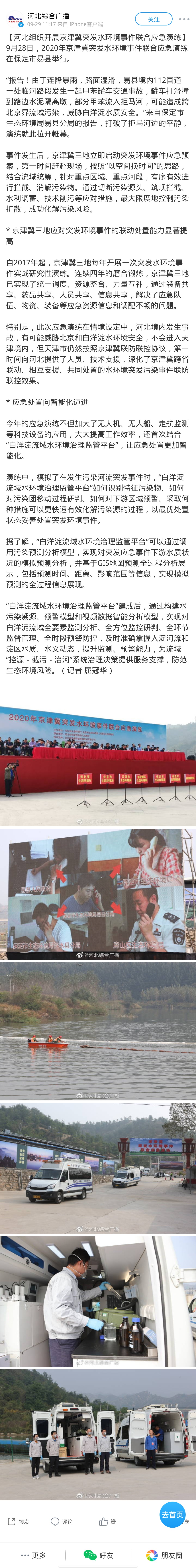河北综合广播微博:河北组织开展京津冀突发水环境事件联合应急演练