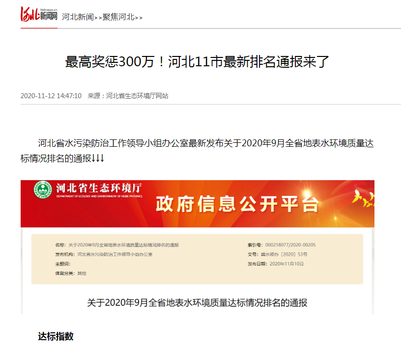 河北新闻网:最高奖惩300万!河北11市最新排名通报来了