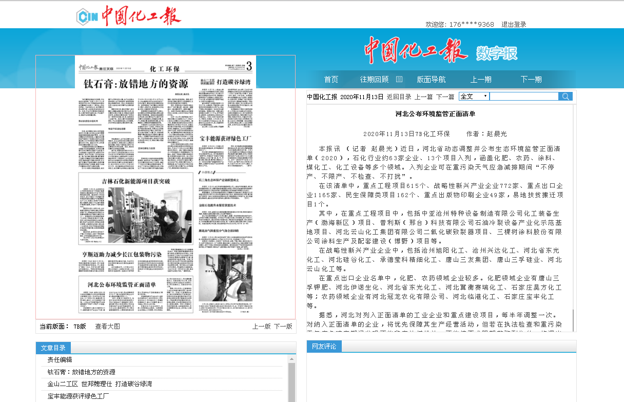 中国化工报:河北公布环境监管正面清单