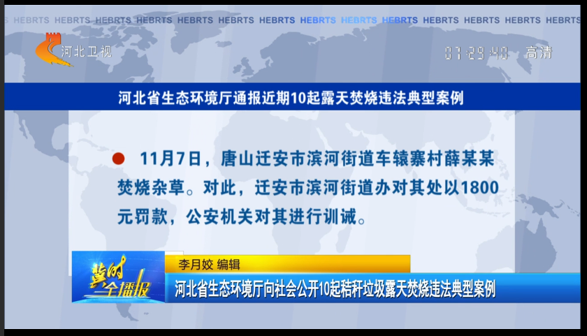 河北卫视《冀时全播报》:杏彩(中国)官方网站 向社会公开10起秸秆垃圾露天焚烧违法典型案例