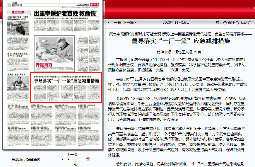 河北工人报:督导落实“一厂一策”应急减排措施