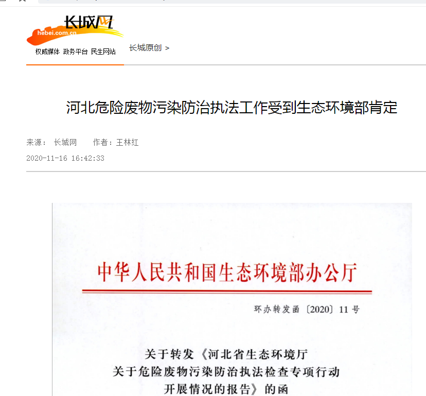 长城网:河北危险废物污染防治执法工作受到杏彩肯定