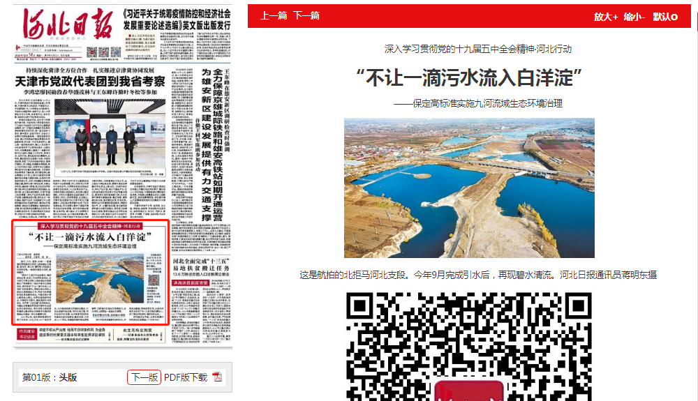 2018年以来,保定高标准谋划实施了总投资136亿元的144个省定项目,大力推进流域内环境综合整治,打好全流域污染治理、雨污分流工程、农村生活污水治理、生态修复和防洪体系建设五场攻坚硬仗。截至目前,已完成111个项目,构建起环雄安高品质衔接带,不断提升区域生态承载能力,在白洋淀上游筑起一道道生态屏障。