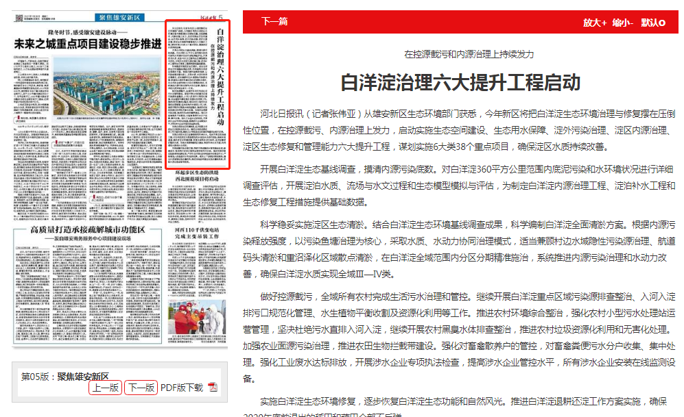 河北日报讯(记者张伟亚)从雄安新区杏彩门获悉,今年新区将把白洋淀生态环境治理与修复摆在压倒性位置,在控源截污、内源治理上发力,启动实施生态空间建设、生态用水保障、淀外污染治理、淀区内源治理、淀区生态修复和管理能力六大提升工程,谋划实施6大类38个重点项目,确保淀区水质持续改善。