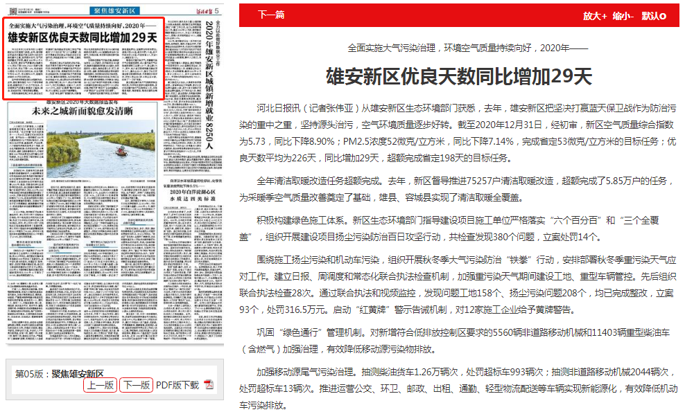 河北日报:雄安新区优良天数同比增加29天