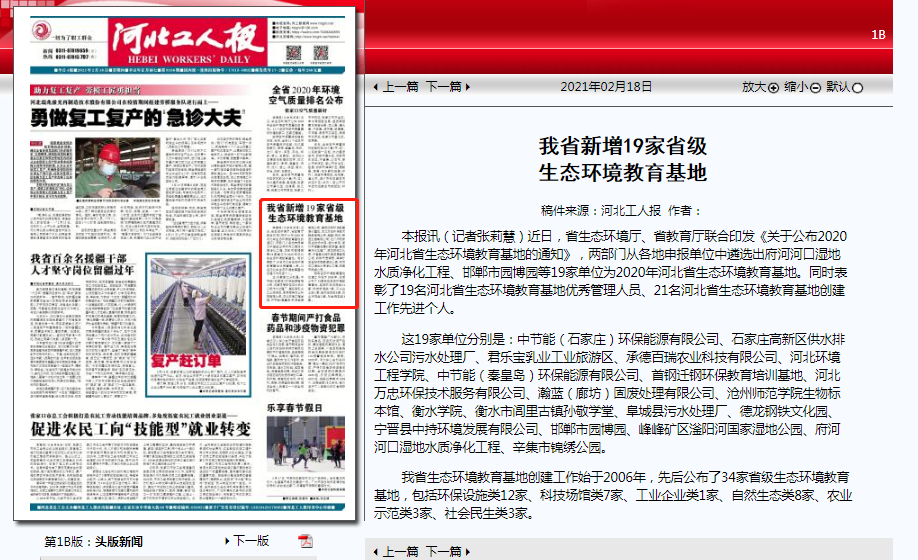 河北工人报:我省新增19家省级生态环境教育基地