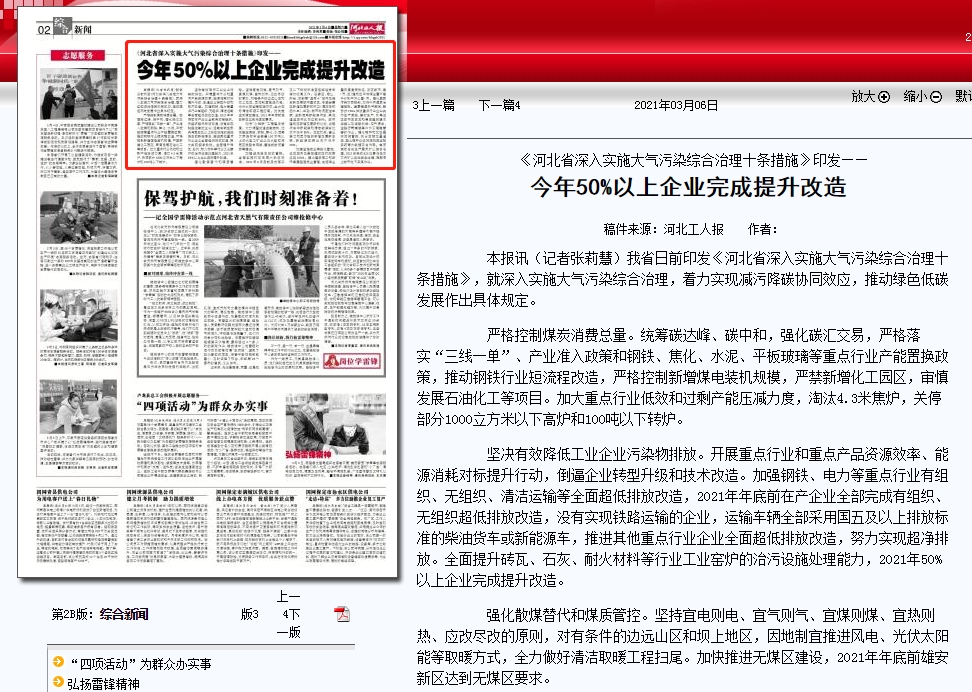 《河北省深入实施大气污染综合治理十条措施》印发——
