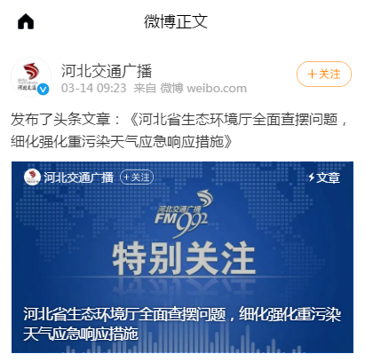河北交通广播微博:杏彩(中国)官方网站 全面查摆问题,细化强化重污染天气应急响应措施 来源:河北省生态环境宣传教育中心 时间:2021-03-16