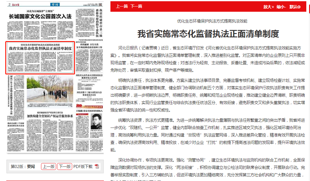 河北日报:我省实施常态化监督执法正面清单制度