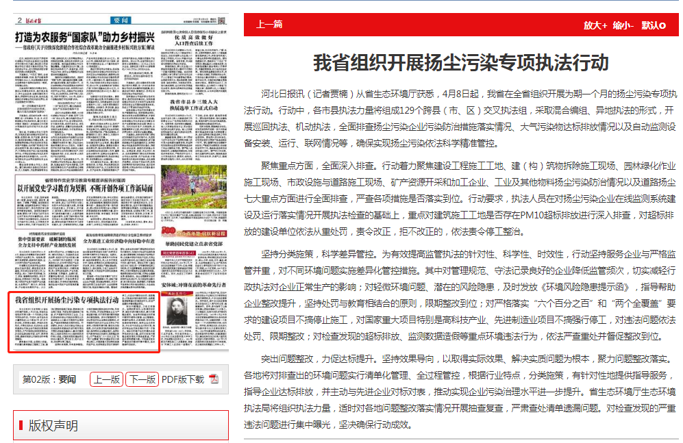 河北日报:我省组织开展扬尘污染专项执法行动