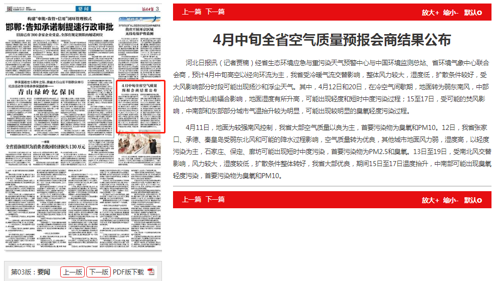 河北日报:4月中旬全省空气质量预报会商结果公布