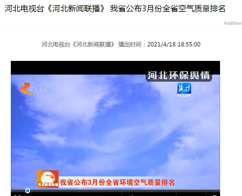 河北电视台《河北新闻联播》: 我省公布3月份全省空气质量排名 来源:河北省生态环境宣传教育中心 时间:2021-04-21