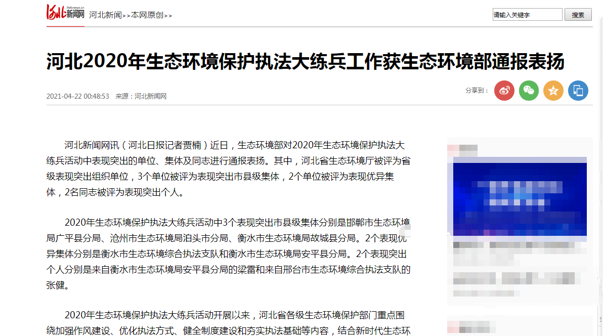 河北新闻网:河北2020年生态环境保护执法大练兵工作获通报表扬