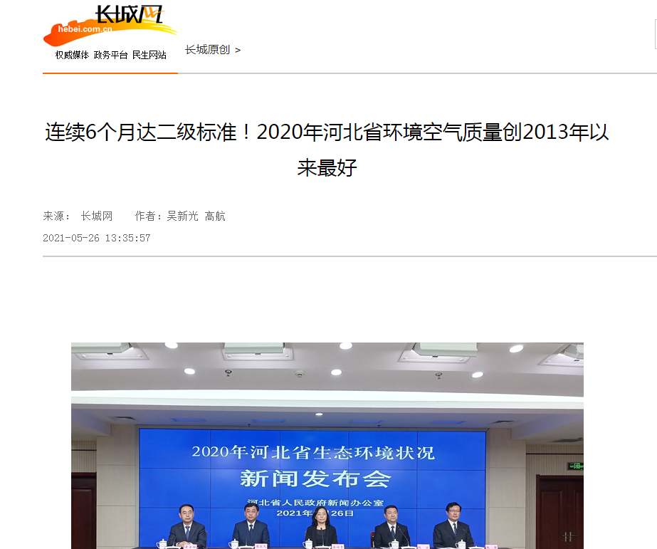 长城网:连续6个月达二级标准!2020年河北省环境空气质量创2013年以来最好
