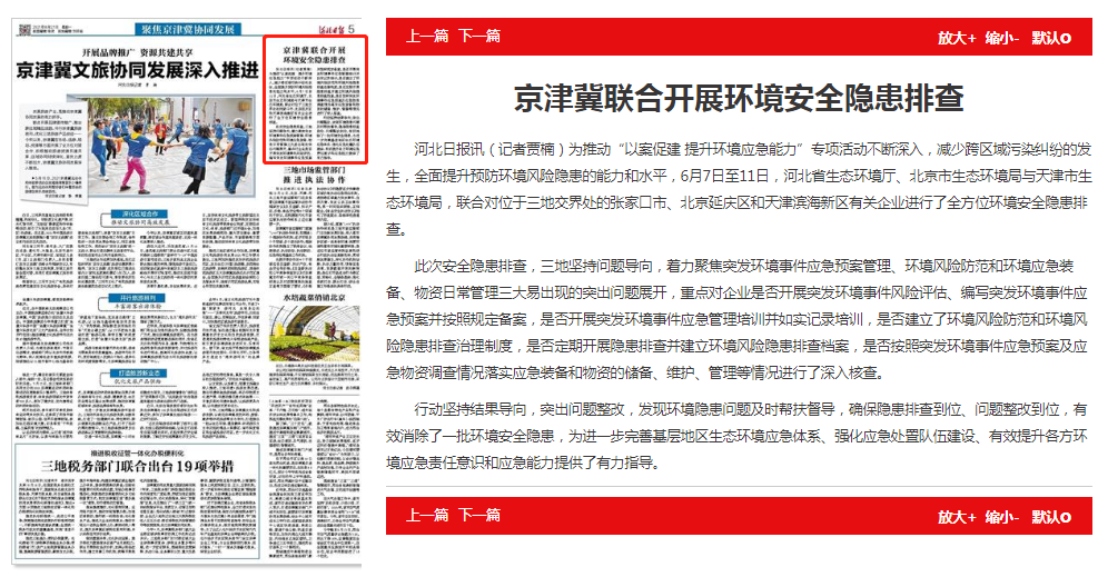 河北日报:京津冀联合开展环境安全隐患排查