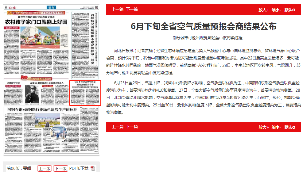 河北日报:6月下旬全省空气质量预报会商结果公布