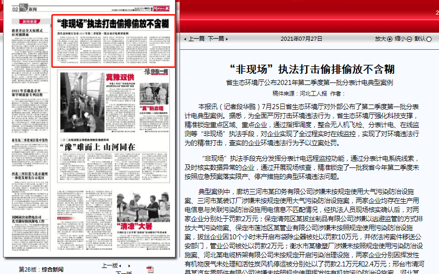 河北工人报: “非现场”执法打击偷排偷放不含糊