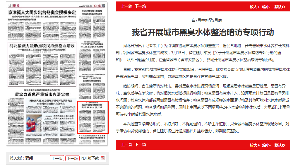 河北日报讯(记者宋平)为持续推进城市黑臭水体排查整治,督促各地进一步完善城市水体养护长效机制,巩固城市黑臭水体整治成效,7月15日,省住建厅印发《关于开展城市黑臭水体暗访专项行动的通知》,从即日起至9月底,在全省城市(含雄安新区)、县城开展城市黑臭水体整治暗访专项行动。