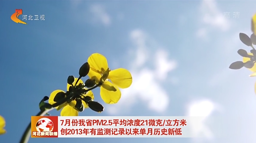 河北卫视《河北新闻呢联播》:7月份我省PM2.5平均浓度21微克立方米 创2013年有检测记录以来单月历史新低 来源:河北省生态环境宣传教育中心 时间:2021-08-13