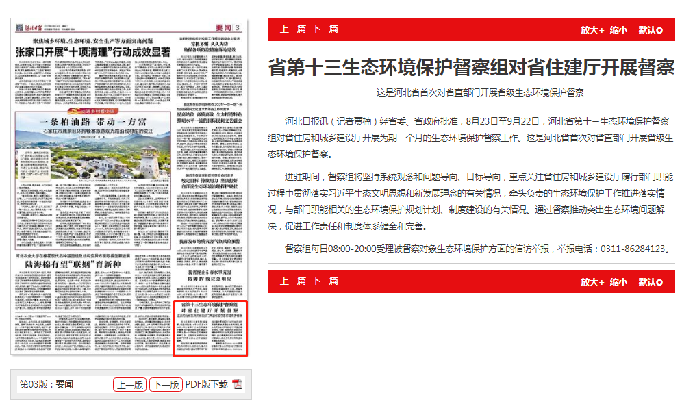 河北日报讯(记者贾楠)经省委、省政府批准,8月23日至9月22日,河北省第十三生态环境保护督察组对省住房和城乡建设厅开展为期一个月的生态环境保护督察工作。这是河北省首次对省直部门开展省级生态环境保护督察。