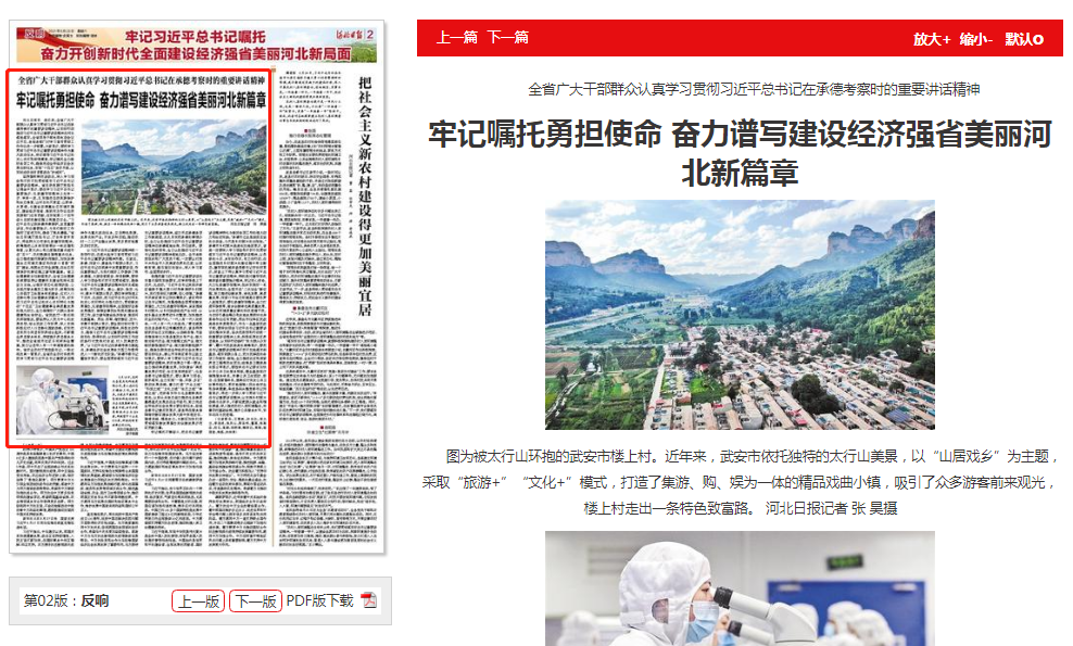 河北日报:牢记嘱托勇担使命 奋力谱写建设经济强省美丽河北新篇章