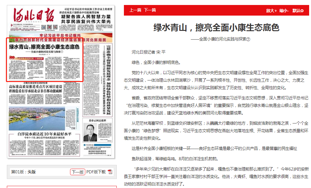 河北日报:绿水青山,擦亮全面小康生态底色