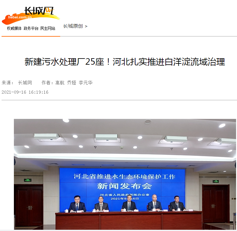 长城网:新建污水处理厂25座!河北扎实推进白洋淀流域治理