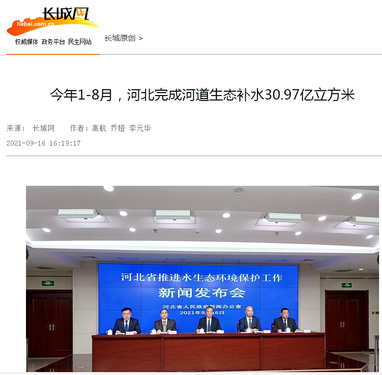 长城网:今年1-8月,河北完成河道生态补水30.97亿立方米