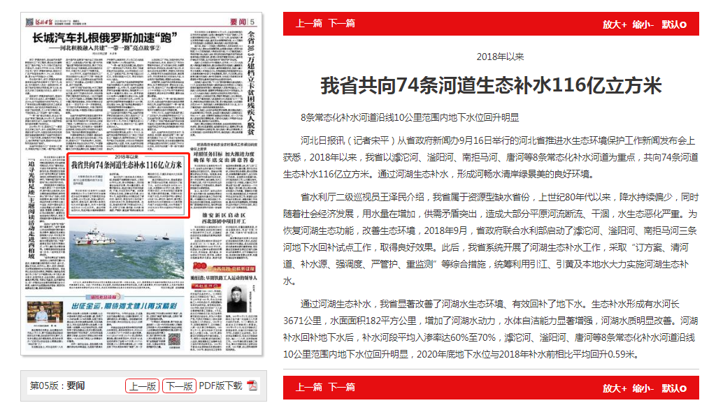 河北日报:2018年以来 我省共向74条河道生态补水116亿立方米