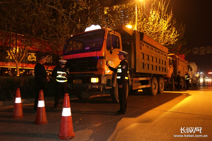 交警上路检查货车闯禁行的违法行为。资料图
