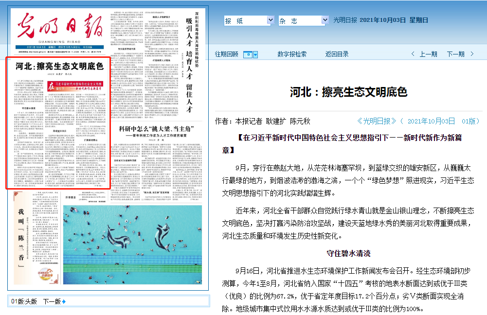 9月,穿行在燕赵大地,从茫茫林海塞罕坝,到蓝绿交织的雄安新区,从巍巍太行最绿的地方,到烟波浩渺的渤海之滨,一个个“绿色梦想”照进现实,习近平生态文明思想指引下的河北实践熠熠生辉。