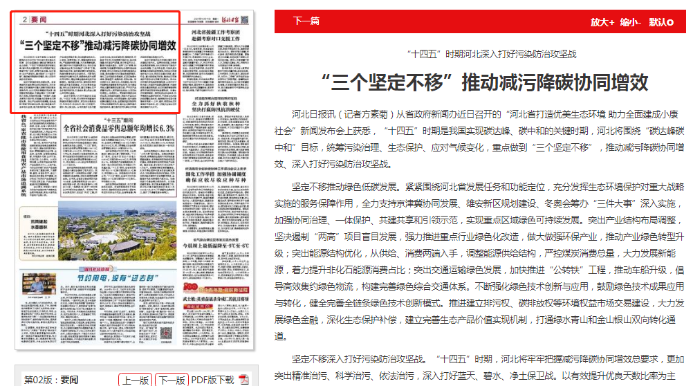 河北日报:“三个坚定不移”推动减污降碳协同增效