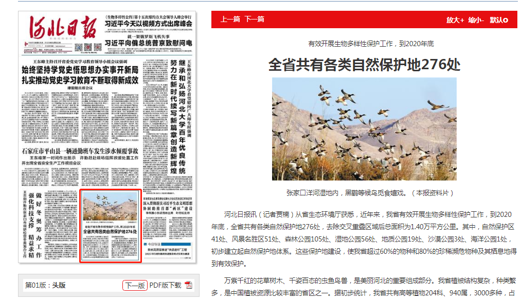 河北日报:全省共有各类自然保护地276处