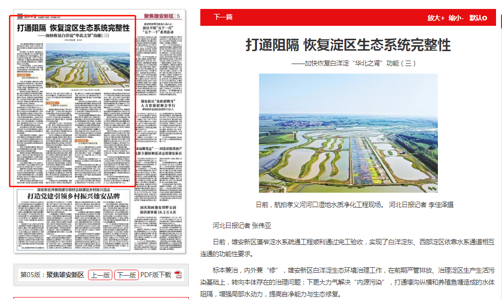 河北日报:打通阻隔 恢复淀区生态系统完整性