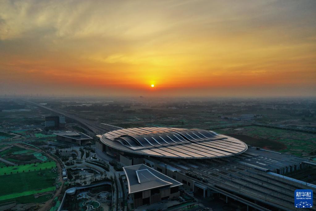 这是7月1日拍摄的京雄城际铁路雄安站(无人机照片)。新华社记者 牟宇 摄