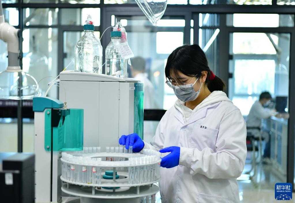 研发分析人员在南开大学·沧州渤海新区绿色化工研究院分析测试中心工作(10月12日摄)。新华社记者 杨世尧 摄