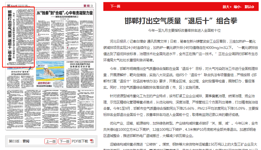 河北日报:邯郸打出空气质量“退后十”组合拳