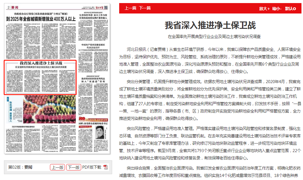 河北日报讯(记者贾楠)从杏彩(中国)官方网站 获悉,今年以来,我省以保障农产品质量安全、人居环境安全为目标,坚持保护优先、预防为主、风险管控、系统治理的原则,不断提升耕地分类管理成效,严格建设用地准入管理,全面整治农业面源污染,深化污染源源头预防和整治,在全国率先开展6个典型行业企业及周边土壤污染状况调查,深入推进净土保卫战,确保群众吃得放心、住得安心。