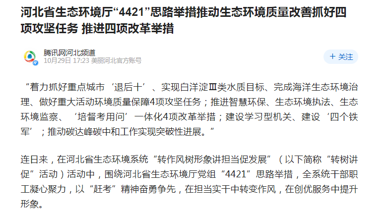 腾讯网河北频道:杏彩(中国)官方网站 “4421”思路举措推动生态环境质量改善抓好四项攻坚任务 推进四项改革举措