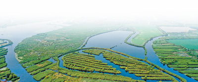 由安新县城向西,穿越一个个村庄,便来到白洋淀首个入淀河口人工湿地——府河河口湿地。抬眼眺望,阳光下,大片繁盛的草木与纵横交错的水道交织,不时传来阵阵鸟鸣。“这里现在是白洋淀重要的生态屏障。雄安新区设立以前,这是一大片农地。”雄安新区生态环境局局长赵宪伟介绍,从2019年开始,雄安新区实施退耕还淀,逐步恢复淀泊水面。截至2021年底,全区稻田、藕田退耕还淀15.05万亩,旱田退耕还淀11.9万亩。